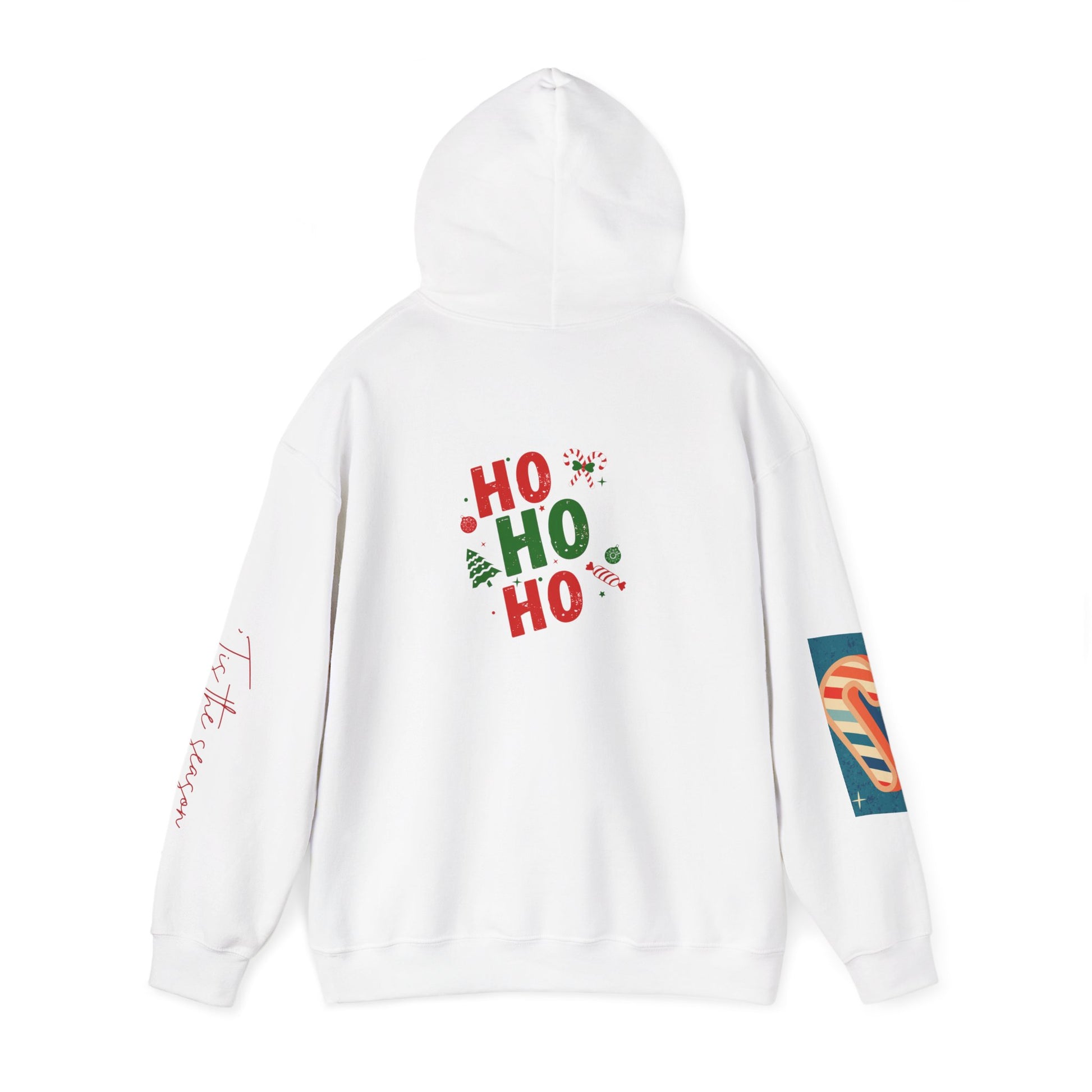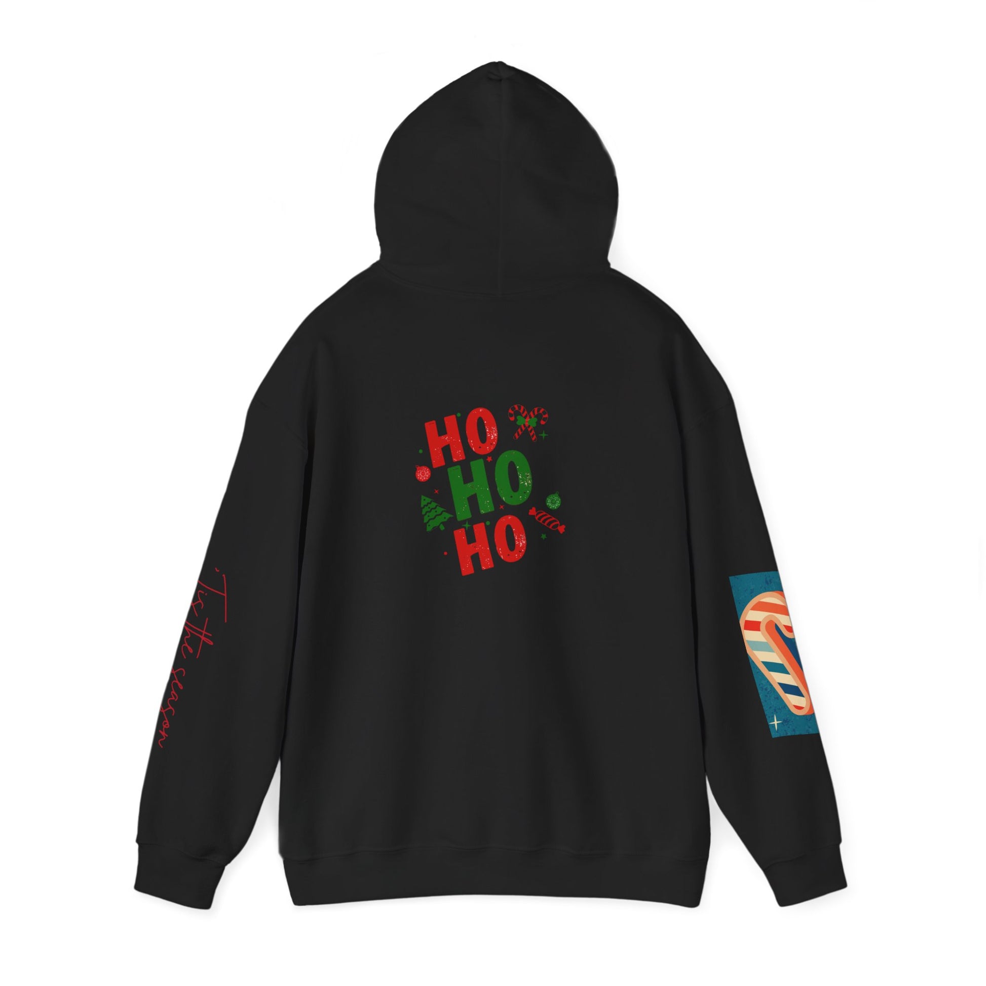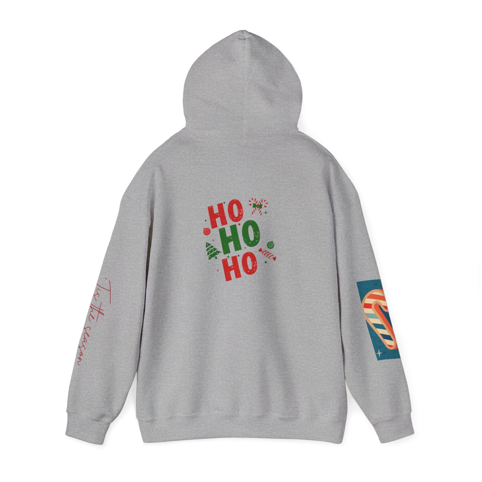 This cozy hooded sweatshirt brings playful holiday spirit to everyday wear. Soft, midweight fabric holds a bold, colorful print of a dabbing Santa on the chest and a festive “HO HO HO” cluster on the back. Sleeve graphics add a modern, streetwear edge while the roomy kangaroo pocket and double-lined hood keep things warm and lived-in. Wear it on crisp mornings, at low-key holiday gatherings, or when you want a cheerful, unmistakable seasonal statement that still feels relaxed and easy to move in.